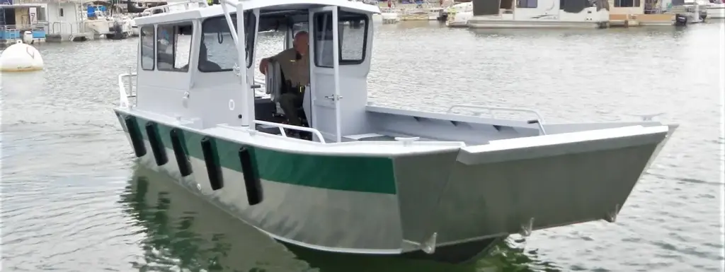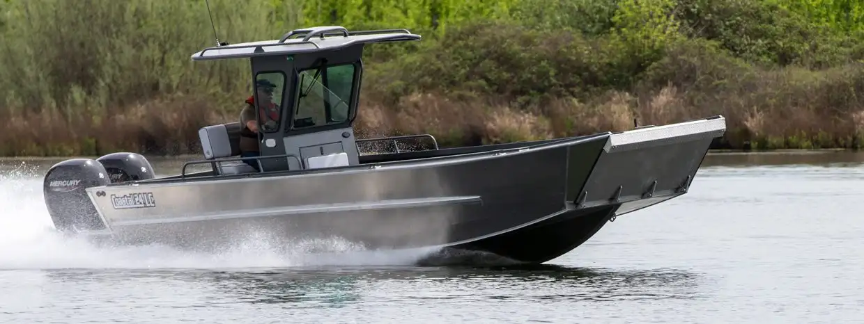 LANDING CRAFT — Providing the utility and tools to get the job done, the Landing Craft by Rogue Jet was specifically developed to accommodate logistics needs. Lodge owners, sportsman, and Government agencies have all embraced the dynamic design and functionality of the Landing Craft.