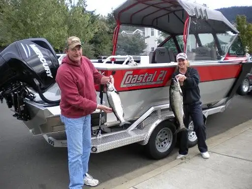 Here are the photographs of our beautiful boat you built for us and the salmon we’ve been able to catch. Everywhere we go at least one person or a couple will tell me what a beautiful boat I have. I kind of smile and thank them for the compliment knowing I did nothing to warrant the return on the compliment but that it was you guys that created such a beautiful boat. I was just telling Rebecca yesterday how happy I am with this boat.